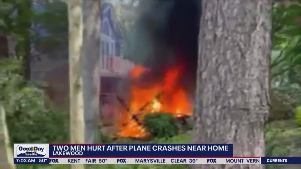 Two people are recovering with non-life threatening injuries after their float plane crashed in a residential neighborhood in Lakewood.