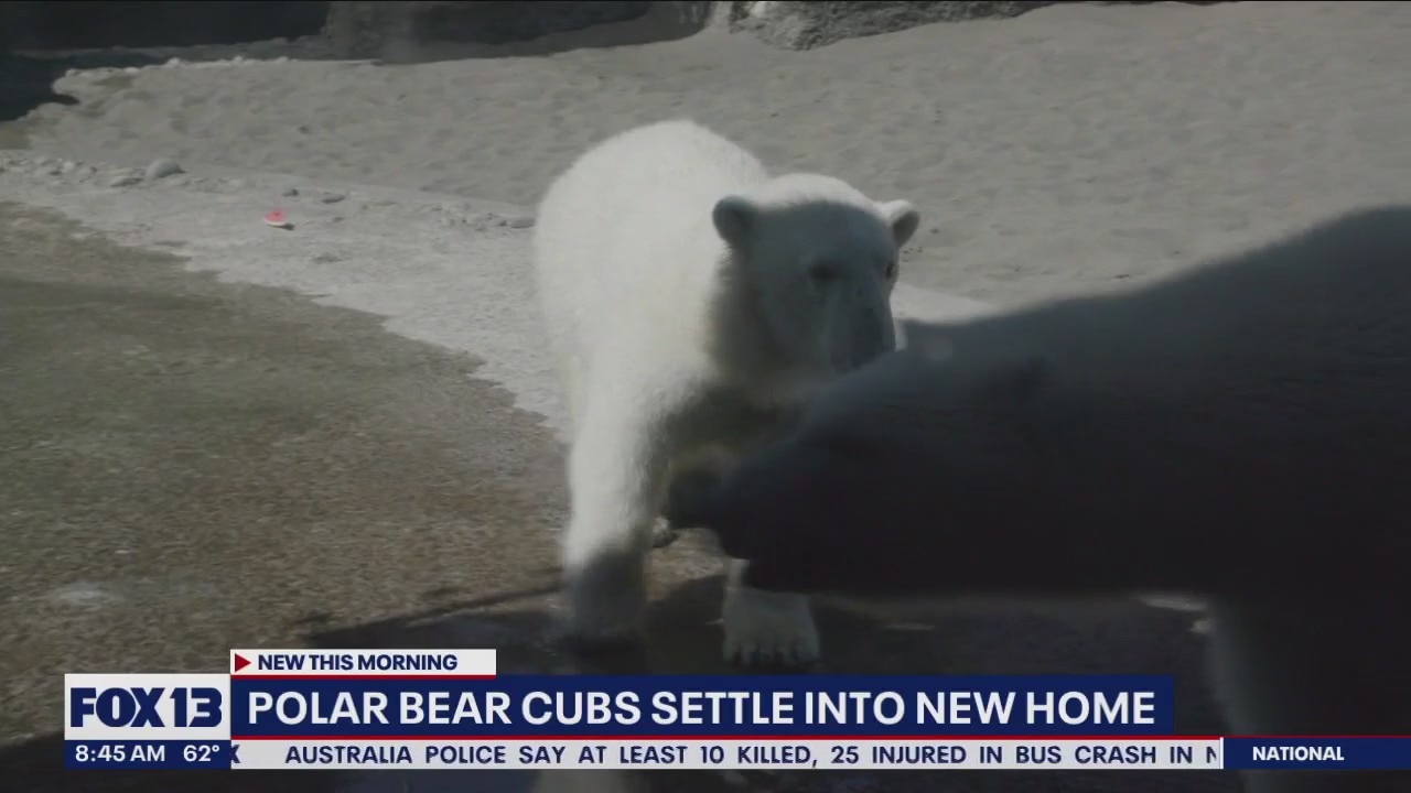Polar bear cubs settle into new home
