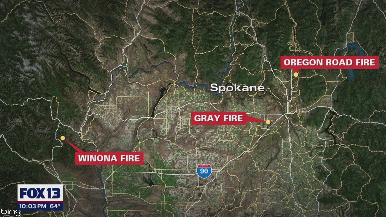 Several wildfires burn near Spokane, portion of I-90 shut down