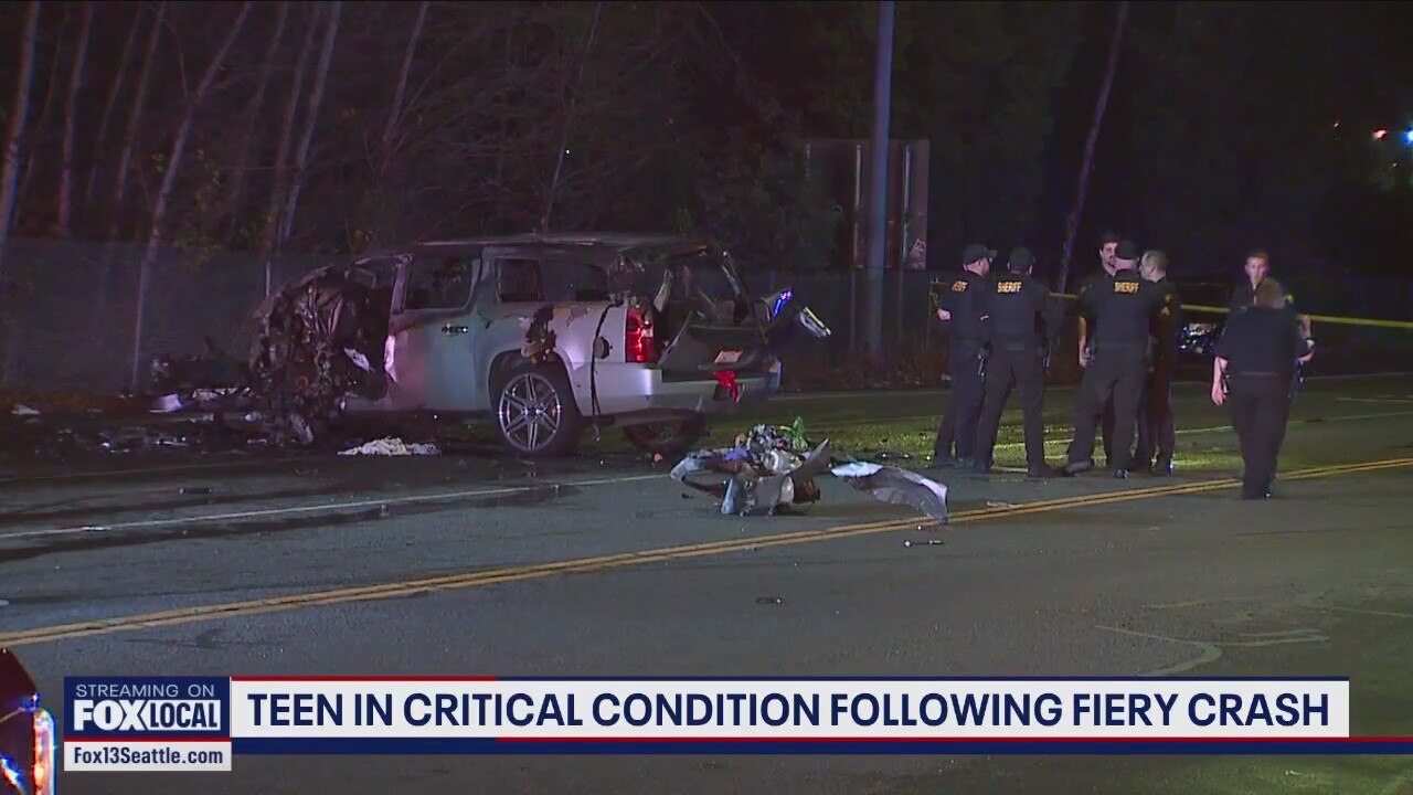 Teen in critical condition after fiery crash