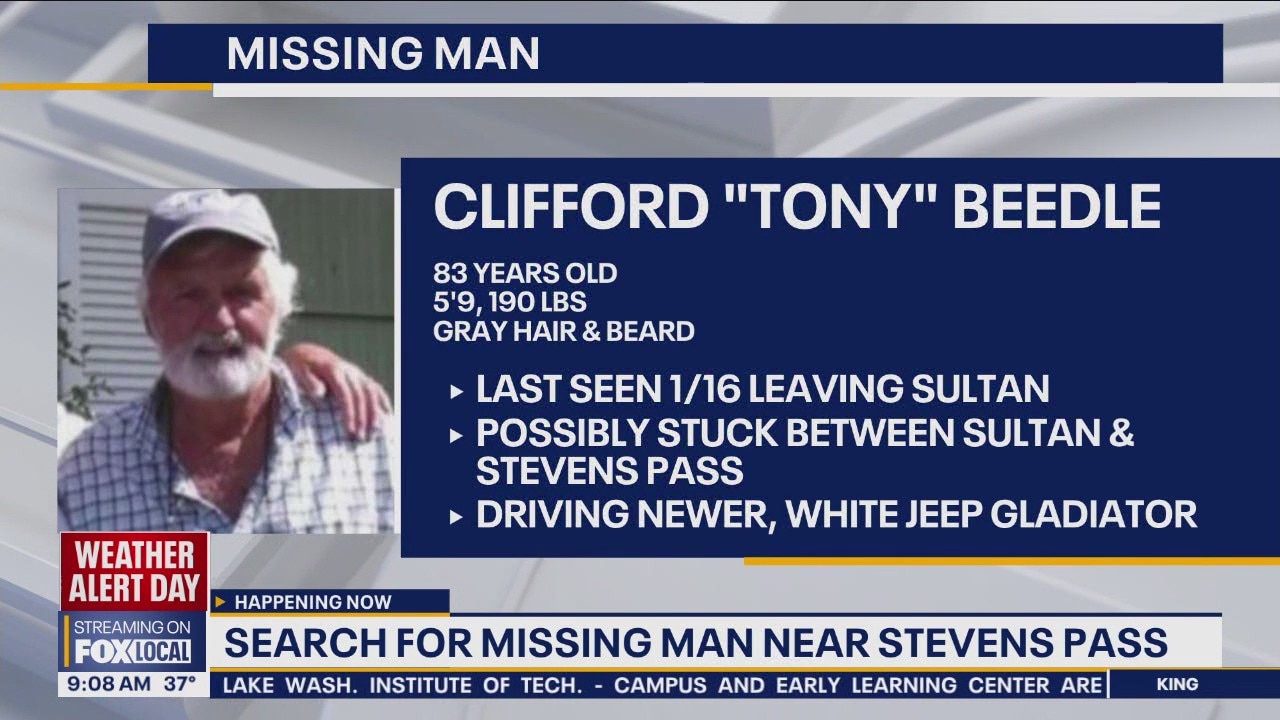 Snohomish County Search and Rescue teams have been relentlessly searching in the deep snow and tough conditions for an 83-year-old man who went missing Tuesday during what was supposed to be a "day trip" near Stevens Pass.