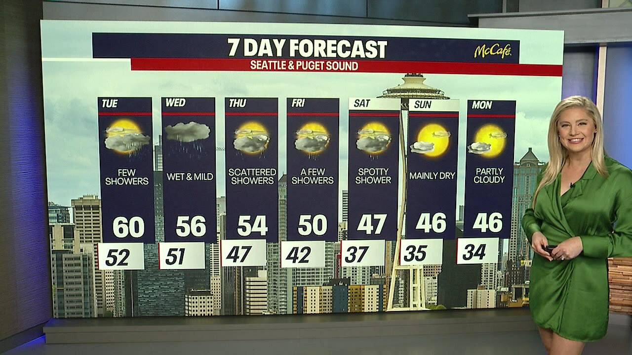 We're expecting another mild day for the Pacific Northwest on Tuesday, with more showers late in the day.