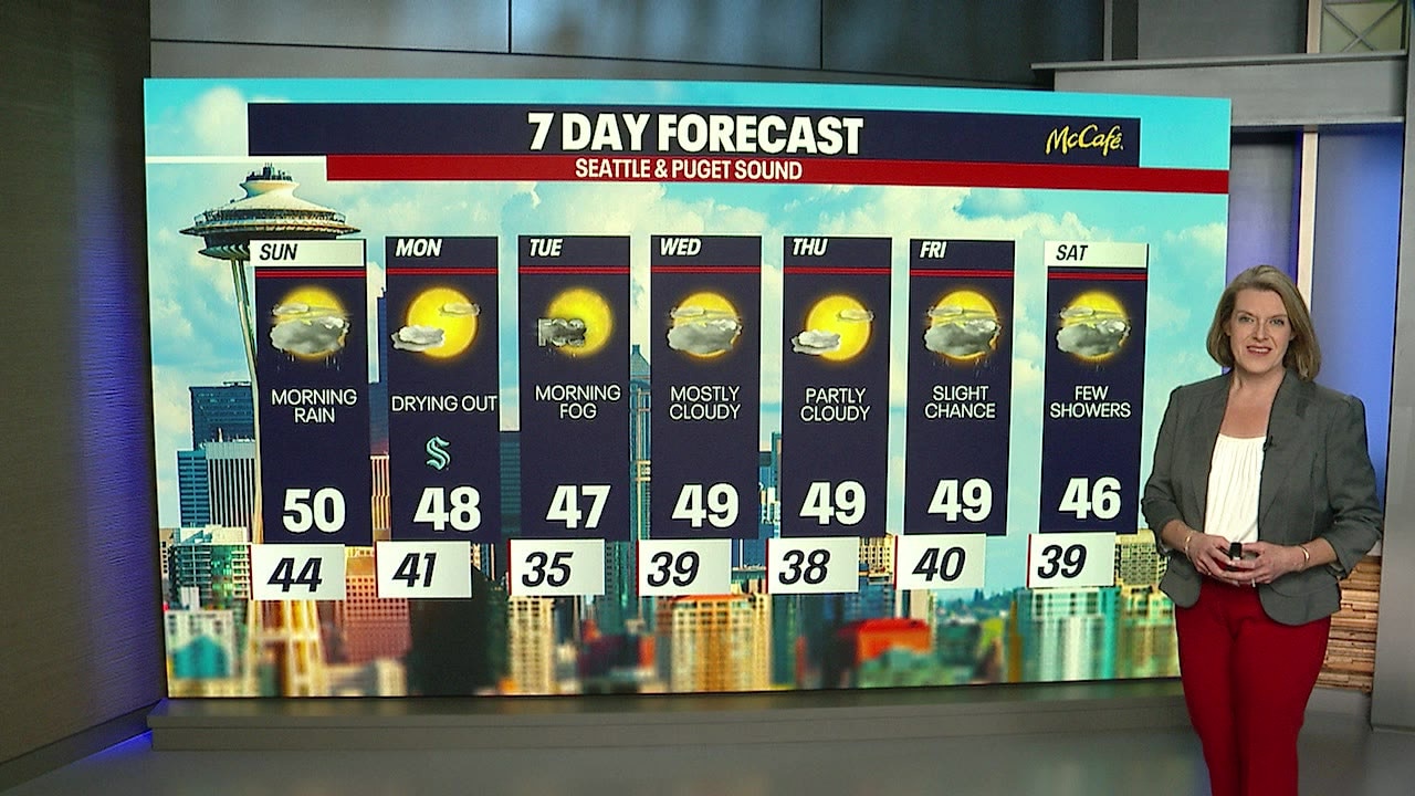 Seattle weather: Overnight mountain snow builds before western WA dries out