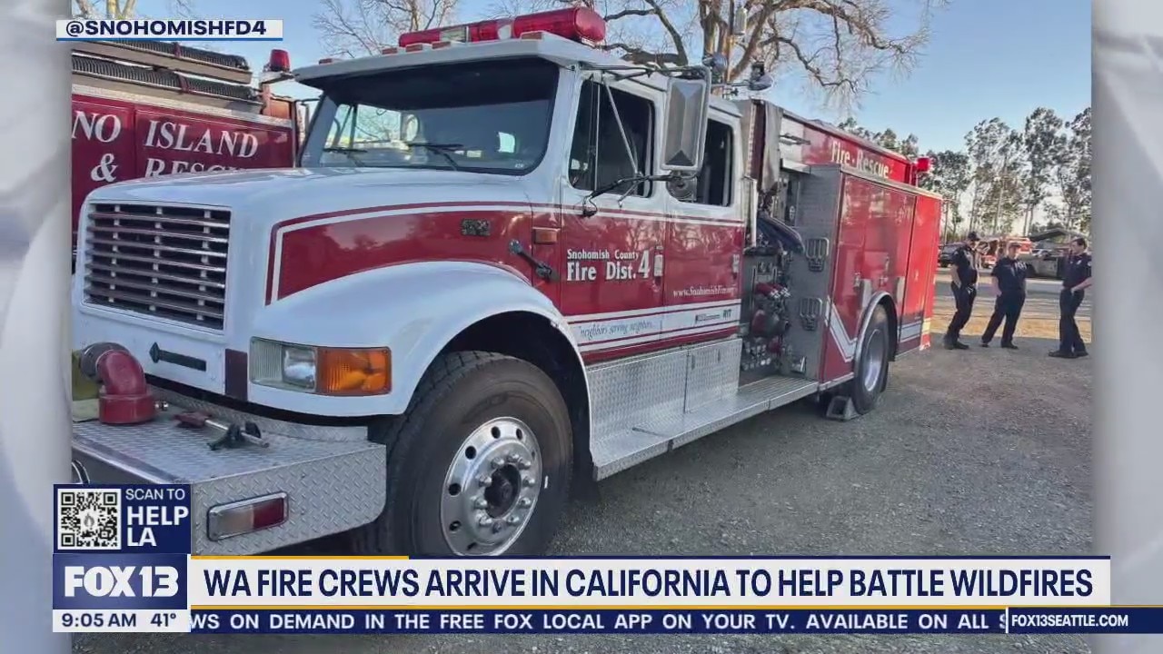 Firefighters all the way from the Evergreen State have made their way down to California to help battle massive wildfires in Los Angeles County. More than 140 firefighters from nine local fire departments in Washington made the trek down to California starting earlier this week and finally arrived Friday night.