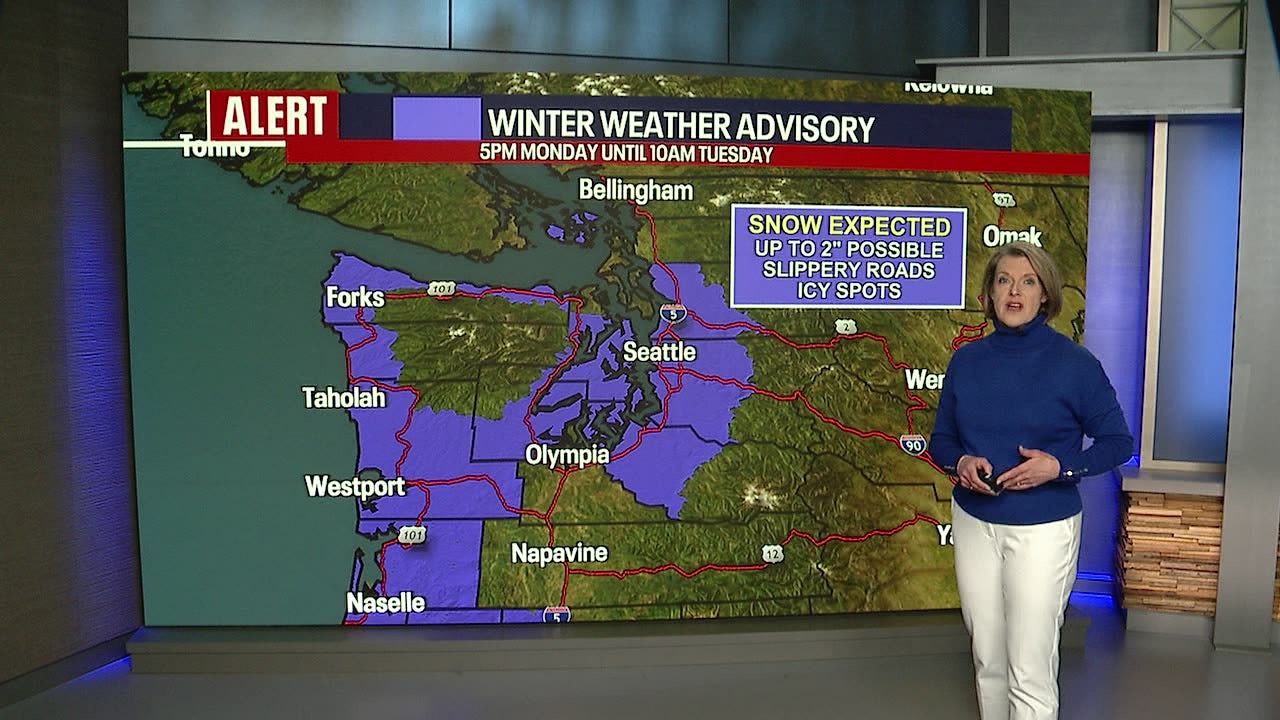 Western Washington is expected to get hit with more snow overnight into Tuesday, with most of the area under a Winter Weather Advisory. FOX 13 Seattle Meteorologist Ilona McCauley breaks down the latest forecast.