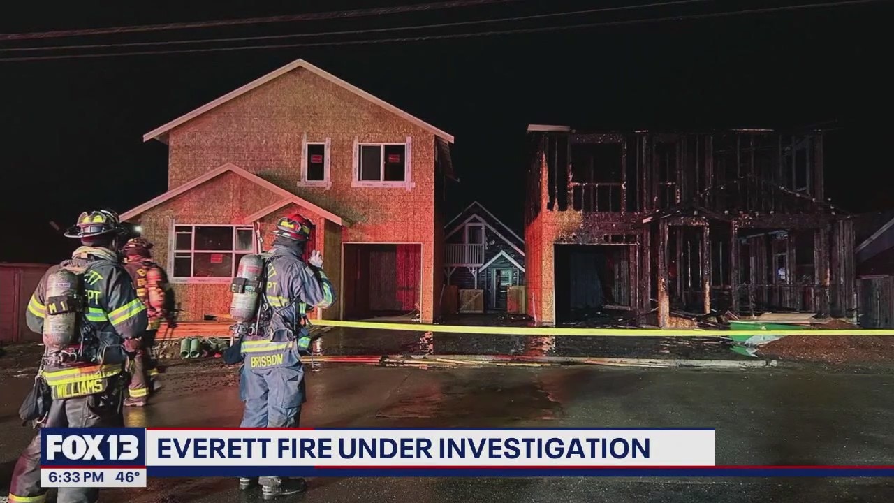 A police investigation was launched after multiple houses under construction caught fire in Everett early Wednesday.