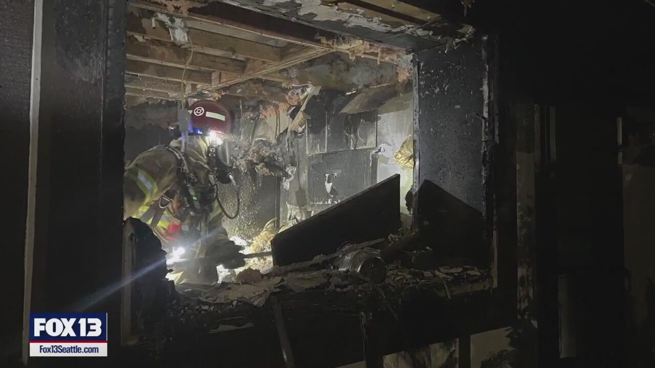 Five people were displaced after a massive fire consumed a duplex in Lakewood on Thursday.