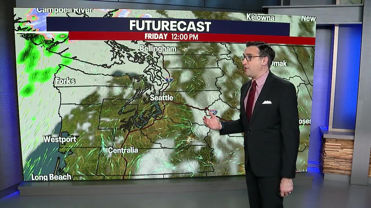 Thursday we should see some sunshine after the morning fog. Temperatures will be in the low 50s. It will end up being a pretty nice day. In the mountains, temps will be in the upper 30s at the pass level.
