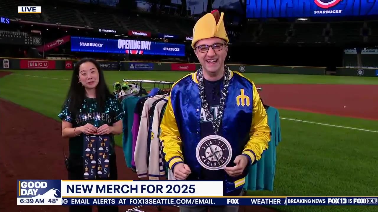 Good Day Seattle brings your a preview of Seattle Mariners Opening Day with a look at new Hot Dogs from Heaven merch, kids club info, the starting roster, giveaways and more at T-Mobile Park.