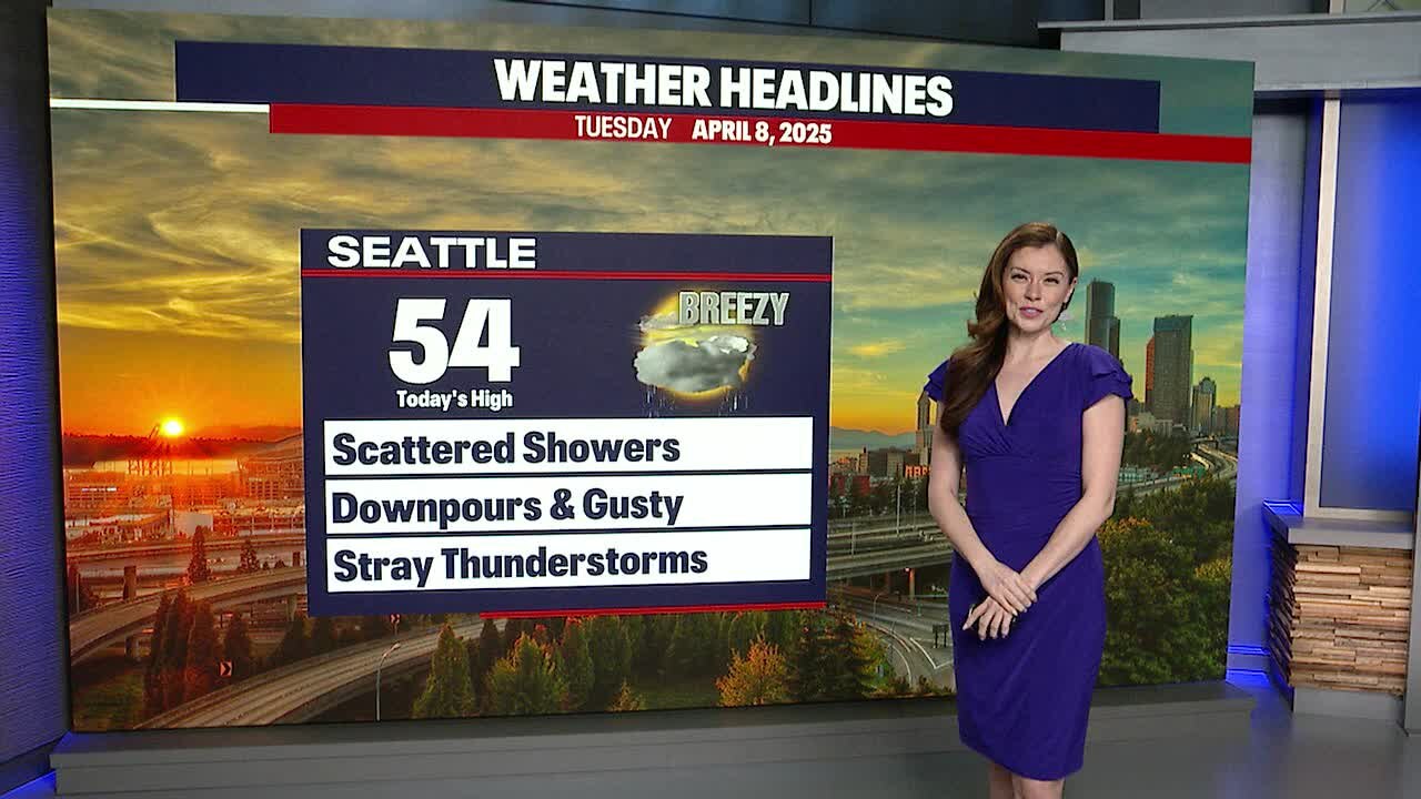 FOX 13 Seattle Meteorologist Abby Acone says Tuesday will be rainy and breezy with a slight chance for thunderstorms.