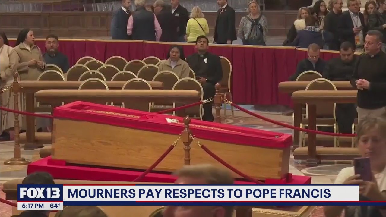 Nearly 20,000 mourners lined up to watch as Pope Francis' coffin was moved to the Vatican on Monday.