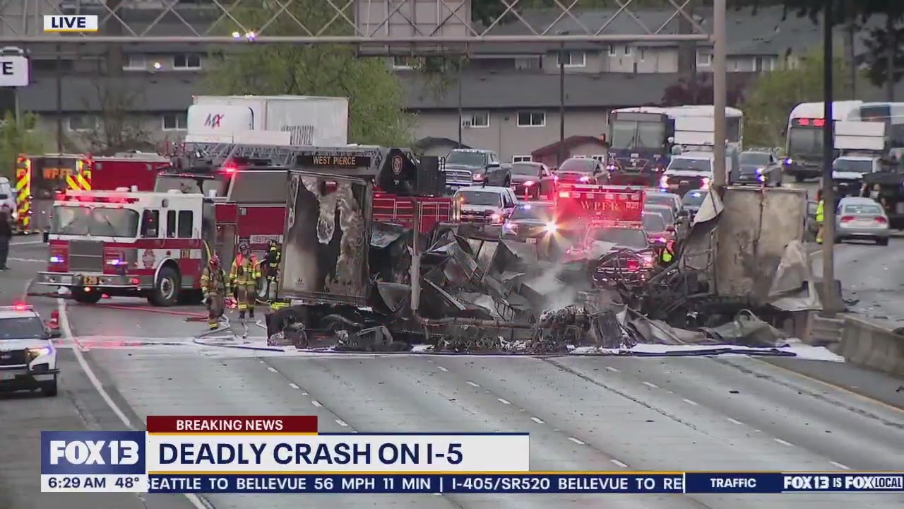 A semi-truck driver was killed in a crash that shut down both directions of I-5 in Tacoma on Tuesday morning.