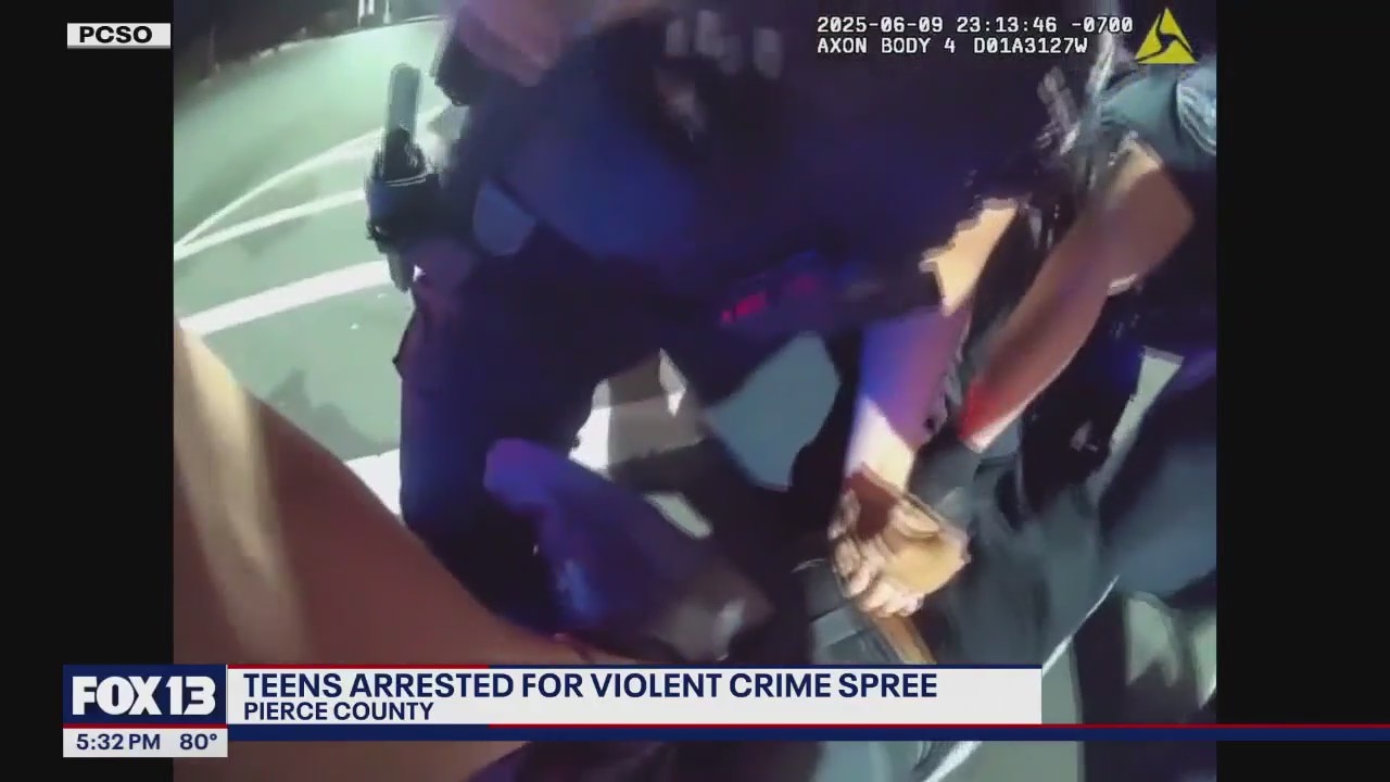 Investigators say two teenagers committed three armed robberies in Pierce County in less than an hour, and bodycam captured their arrests.