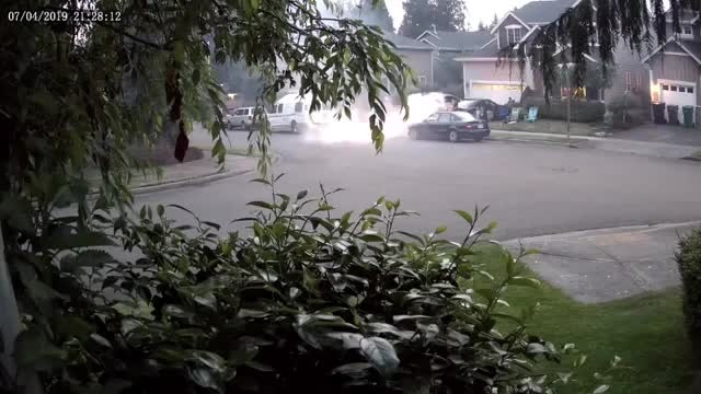 A family in Lynnwood, WA were lucky to have escaped injury after their fireworks suddenly went off all at once, sending people in the neighborhood running.