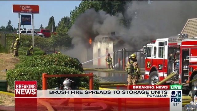 Brush fire spreads to Puyallup storage facility