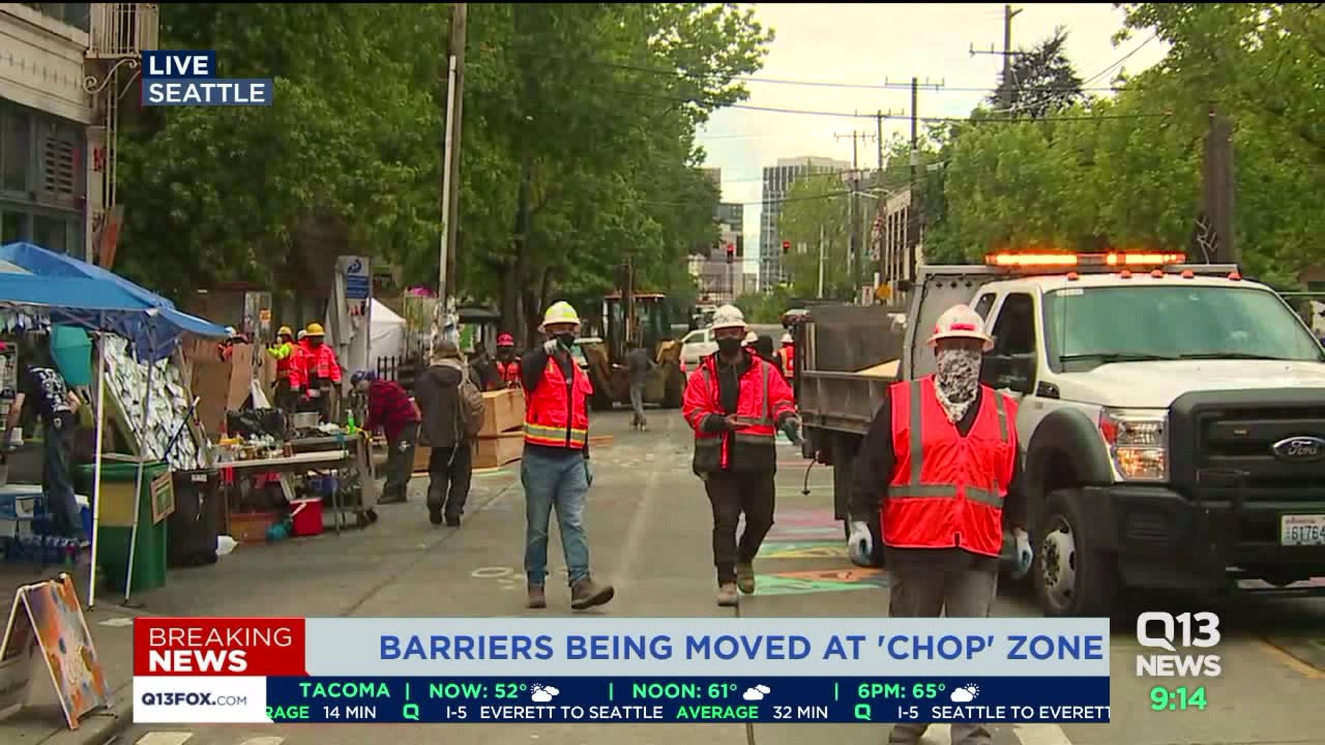 Barriers being moved at CHOP in Seattle