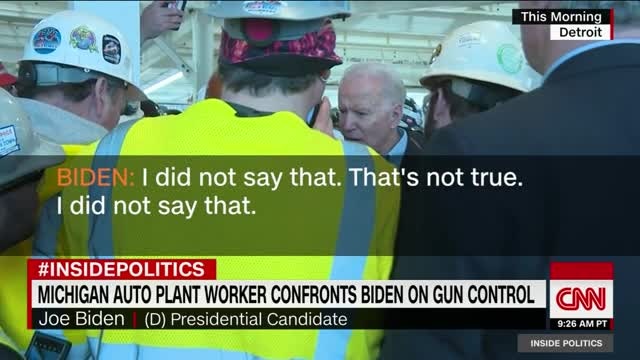 Democratic presidential candidate Joe Biden was confronted by an auto plant worker in Michigan who accused him of wanting to confiscate guns from Americans.