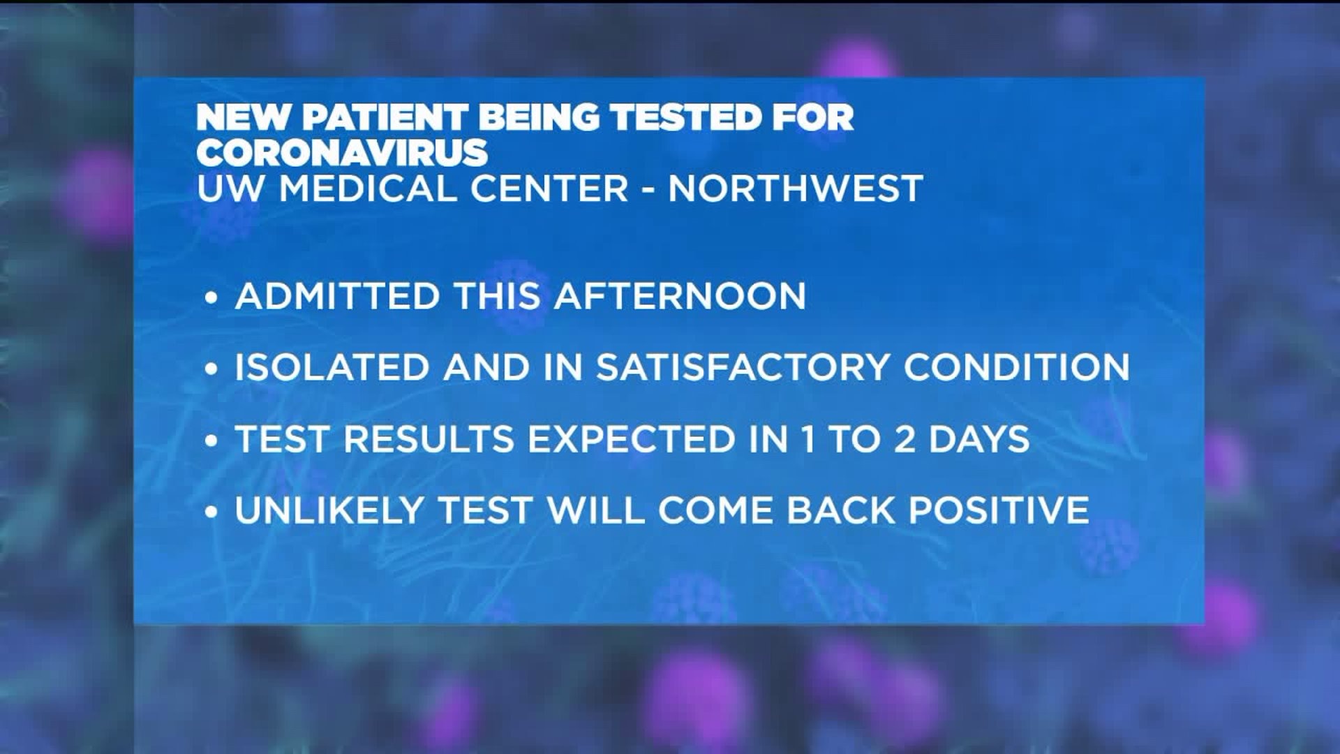 New patient being tested for Wuhan coronavirus in Seattle