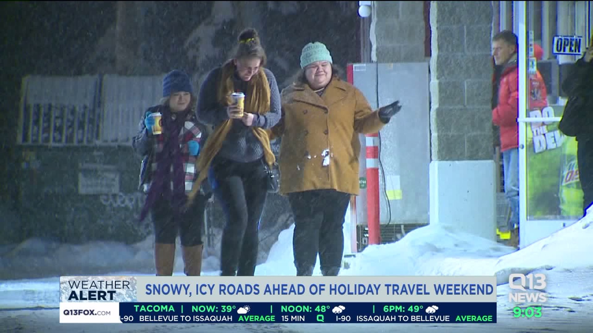 As of Thursday evening, chains were required for all vehicles (except all-wheel drive) on I-90 over Snoqualmie Pass. Travel times in both directions were about 30 minutes longer than normal.
