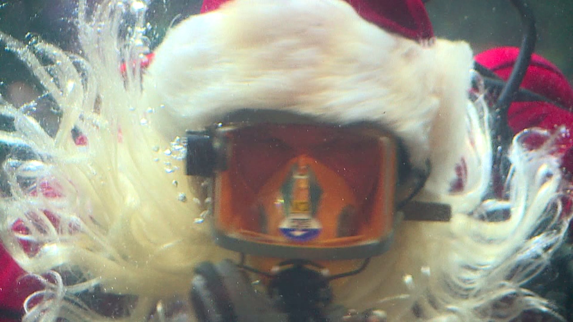 Santa in scuba gear helping Seattle Aquarium spreading holiday cheer