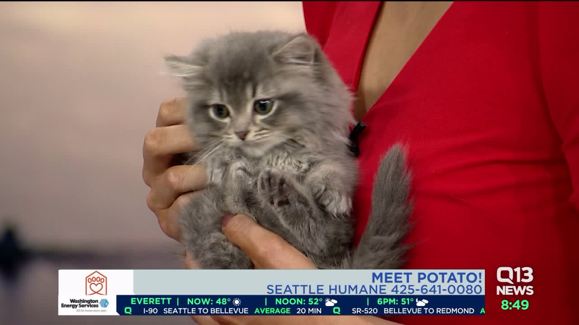 Potato the celebrity kitten with dwarfism stops by Q13 News