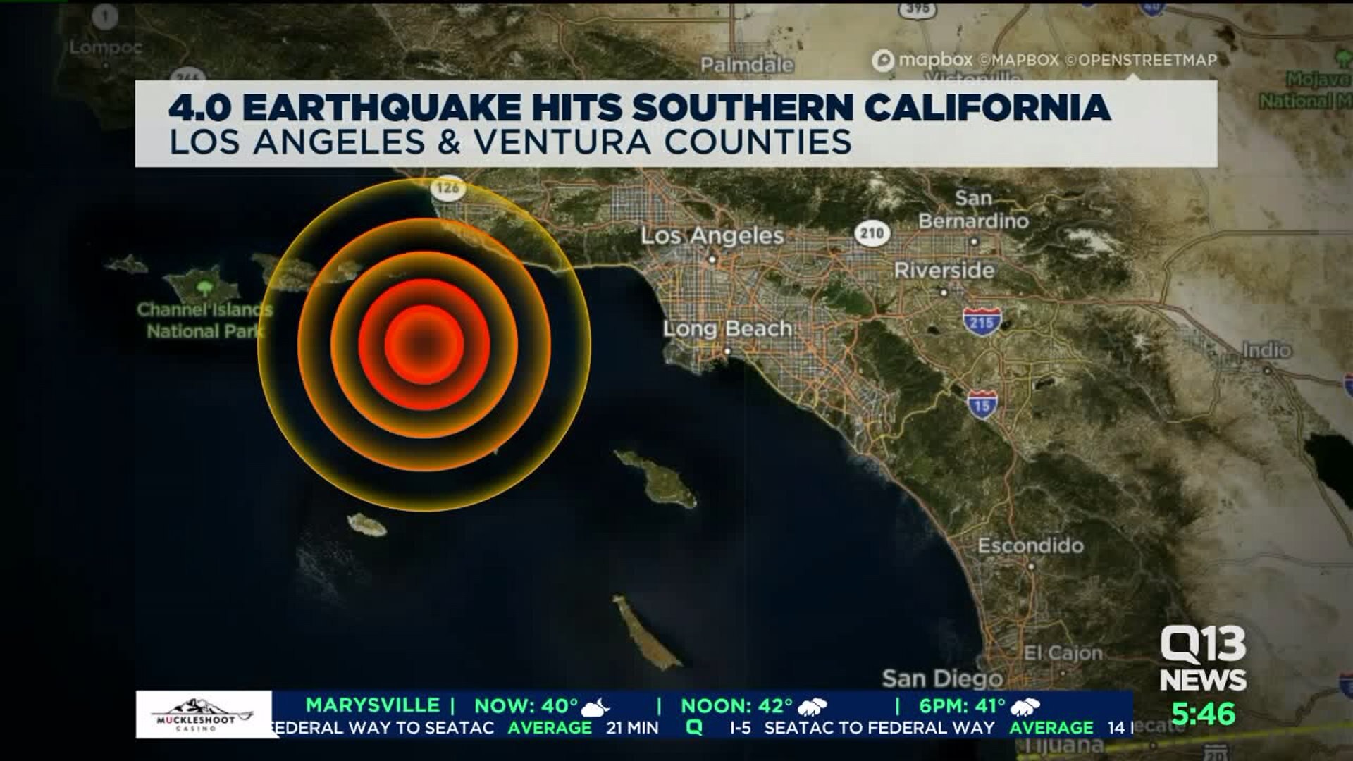 A 4.0 magnitude earthquake lightly shakes the Los Angeles area