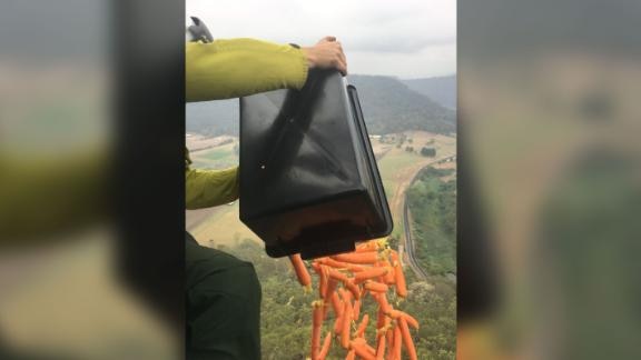 Officials in Australia are air dropping thousands of pounds of foods like carrots and sweet potatoes from planes to help feed wildlife affected by the fires.