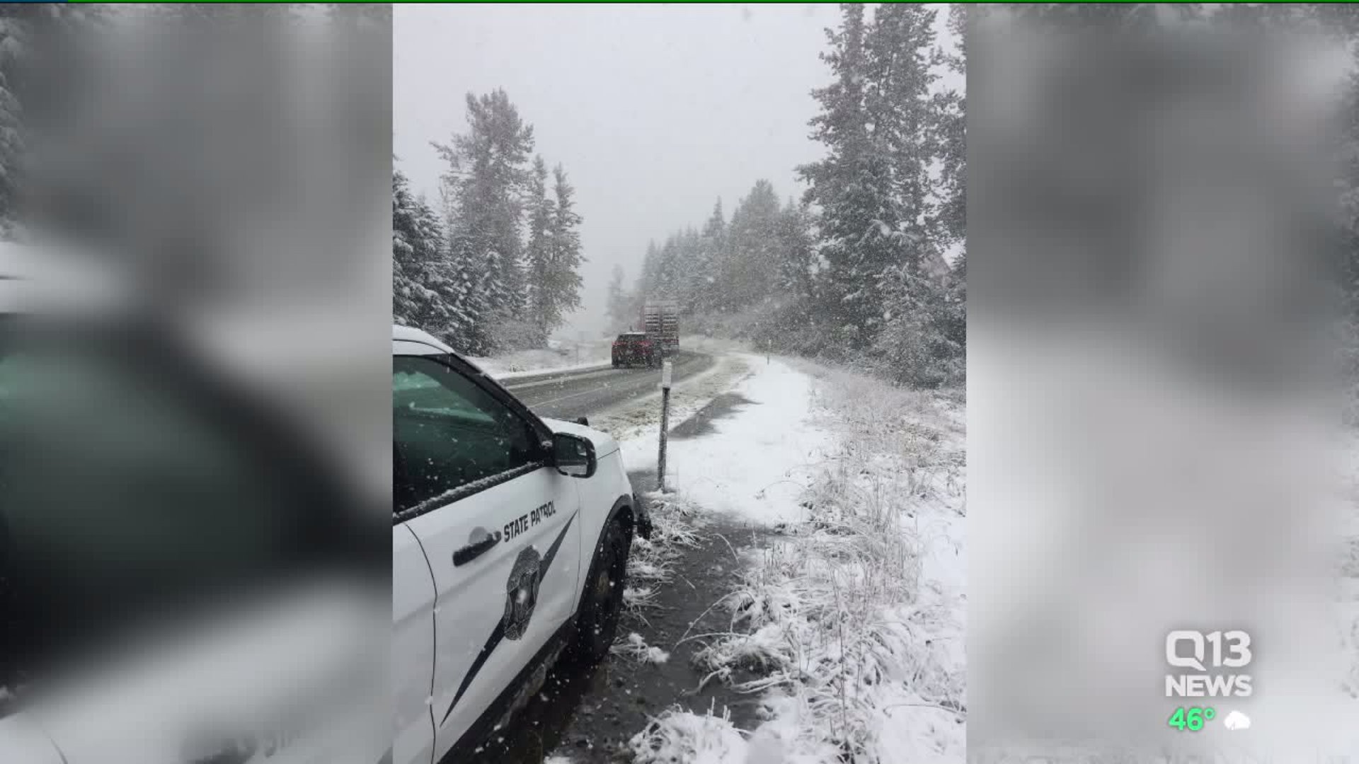 Traction tires required on Stevens, Snoqualmie Passes as snow blankets roadways