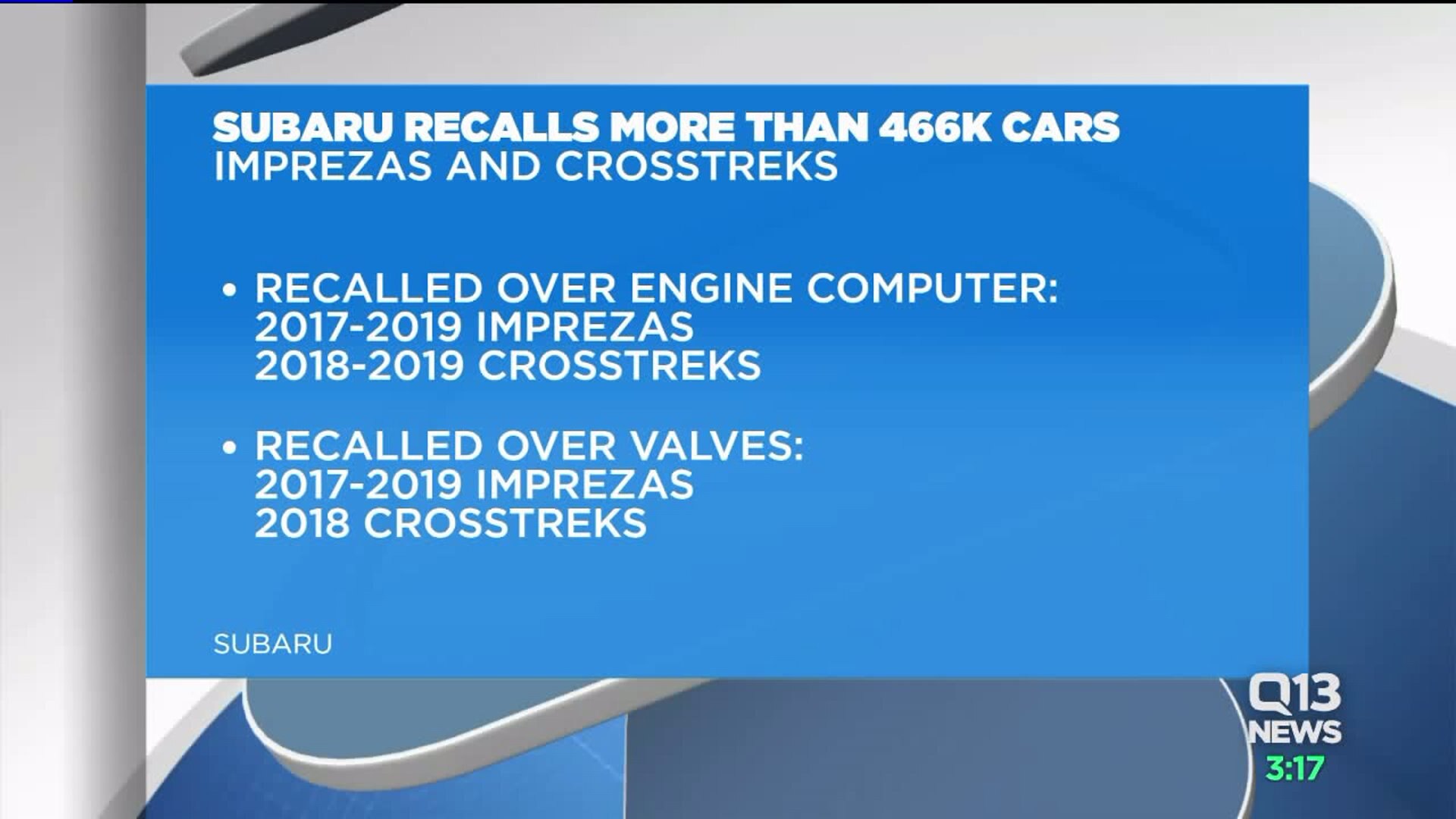 Subaru is recalling more than 400,000 Crosstreks and Imprezas