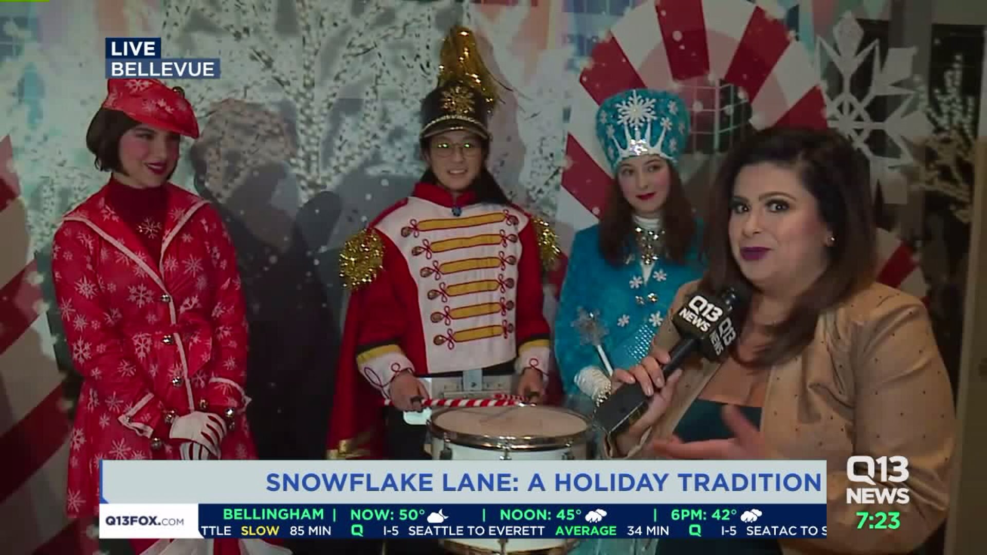 Snowflake Lane is a nightly parade with a cast of 300 performers including Toy Drummers, Jingle Belle Dancers, Stilt Walkers, Snow Flurries Color Guard and 16 lighted floats