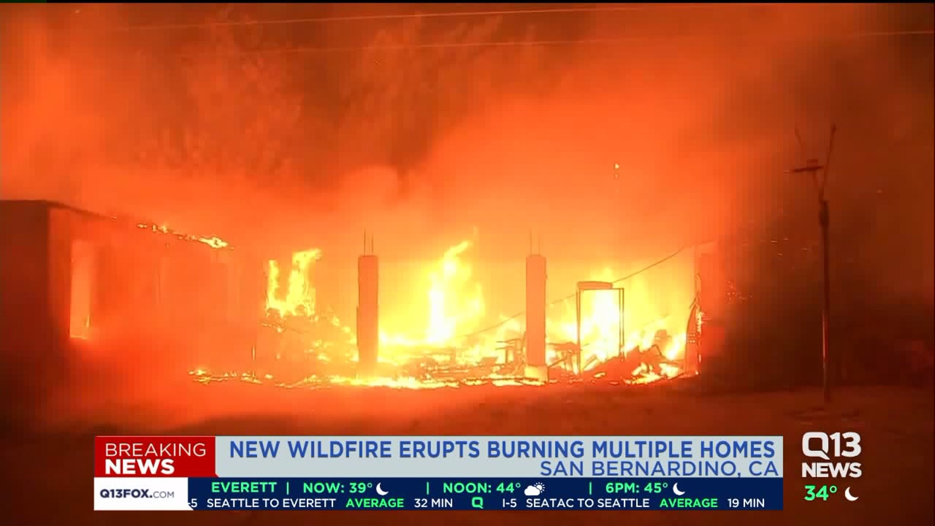 Strong winds fanned new Southern California wildfires on Thursday, burning homes and forcing residents to flee their homes in a repeat of the frightening scenario already faced by tens of thousands across the state. The latest blazes erupted in the heavily populated inland region east of Los Angeles as strong, seasonal Santa Ana winds continued to blow with gusts of up to 60 mph (96 kph) predicted to last until the evening before they fade away. A fast-moving fire spread into the northern neighborhoods of the city of San Bernardino, forcing the evacuation of 490 homes approximately 1,300 people, the San Bernardino County Fire Department said. Fire Chief Don Trapp said initial assessment showed that six homes and two outbuildings were destroyed or damaged in the 200-acre (80-hectare) fire. In the nearby city of Jurupa Valley, evacuation orders were issued for homes around a 150-acre (60-hectare) fire. Three residences and two outbuildings were confirmed destroyed, the county's fire department said. That fire came after another blaze Wednesday in Jurupa Valley forced the evacuation of two mobile home parks and a psychiatric nursing care facility, where elderly people wearing face masks and wrapped in blankets were taken out in wheelchairs and gurneys as smoke swirled overhead. The blaze grew to 200 acres (80 hectares) in size before its spread was stopped.