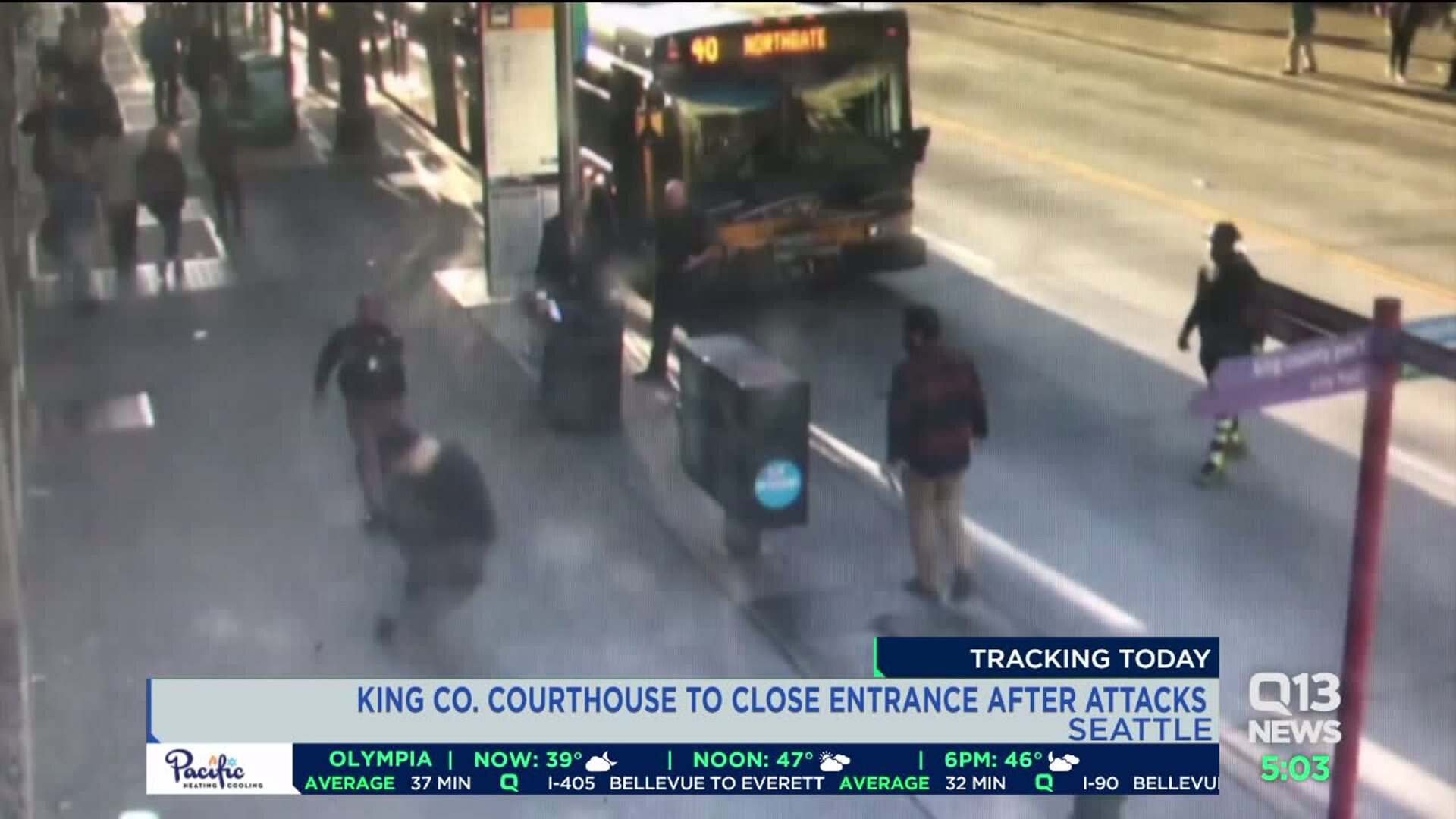 The King County Courthouse's entrance on Third Avenue will be closed for the rest of the year after multiple acts of violence and safety concerns.