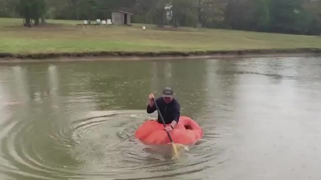 Man carves boat out of 900-pound pumpkin