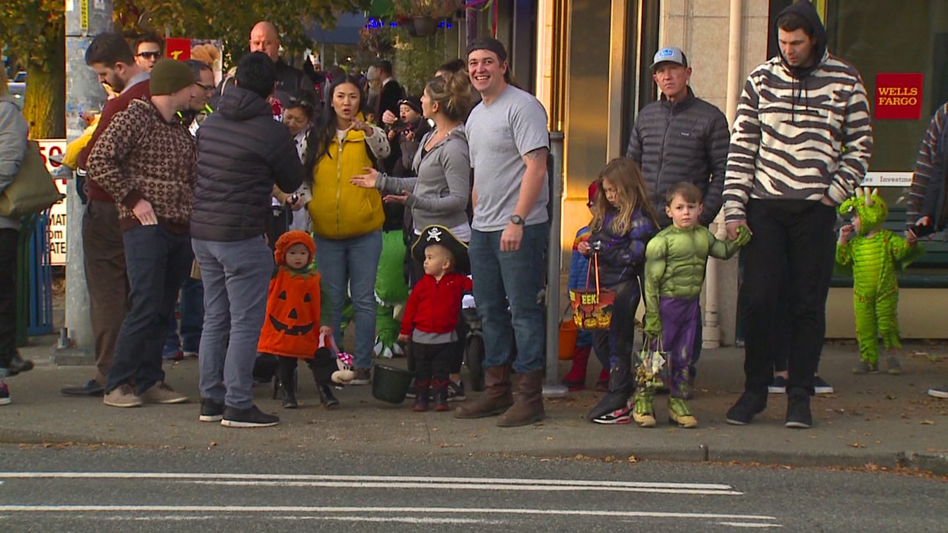 Families dressed in Halloween costumes marched up and down the Admiral District for some early trick-or-treating on Wednesday.
