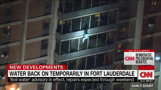 After an apartment caught on fire in west Philadelphia, a man climbed out of his apartment and descended numerous stories, grabbing on to balconies and railings on his way.