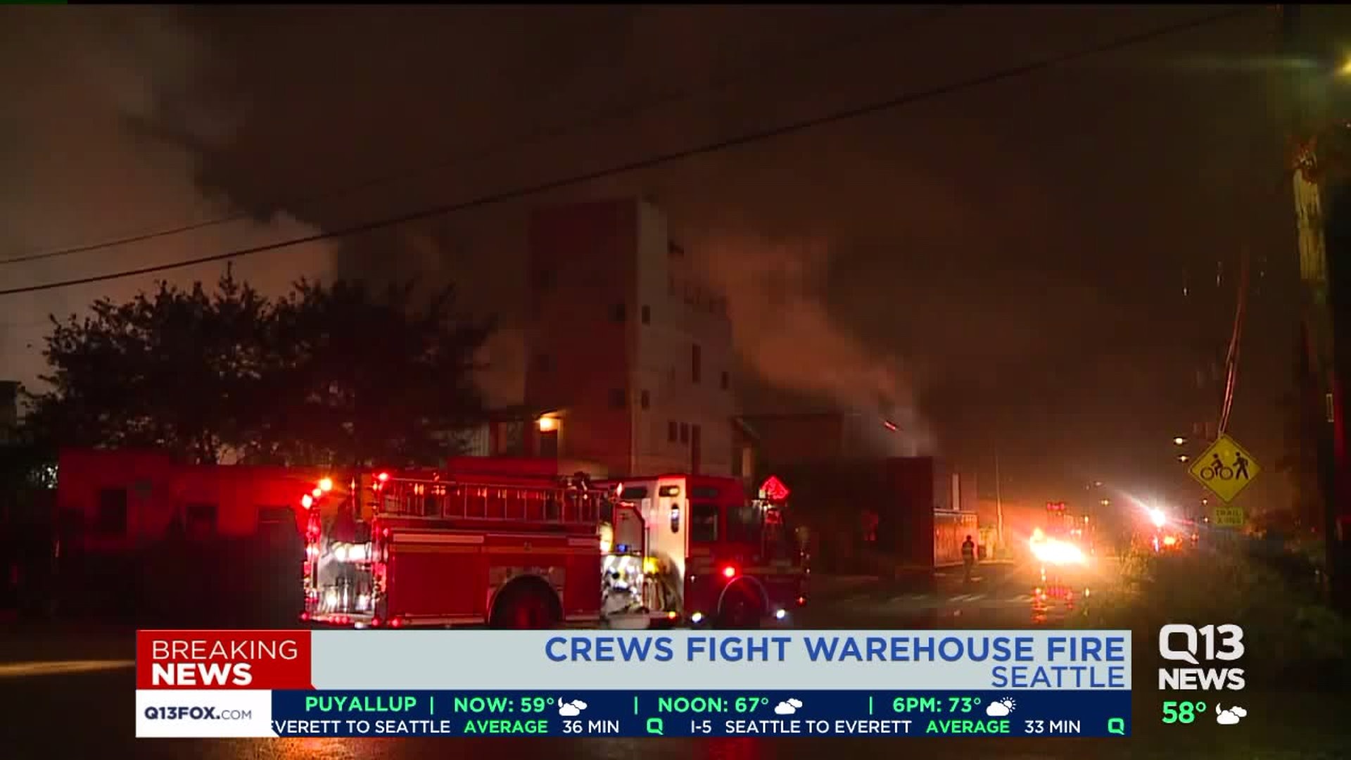 A large warehouse fire in Seattle's Fremont neighborhood sent large smoke plumes into the air early Monday morning, but firefighters were able to get it under control quickly.