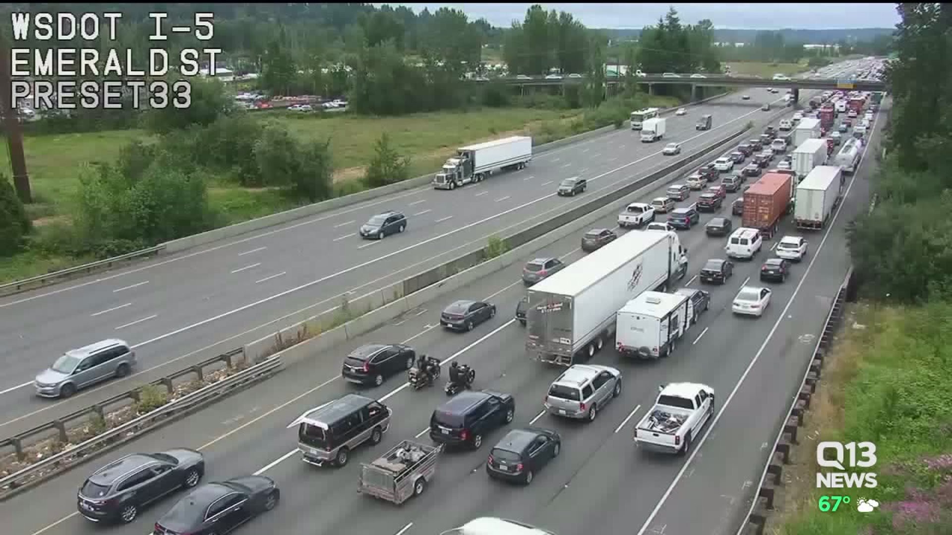 Southbound I-5 backed up in Fife after fleeing robbery suspect crashes