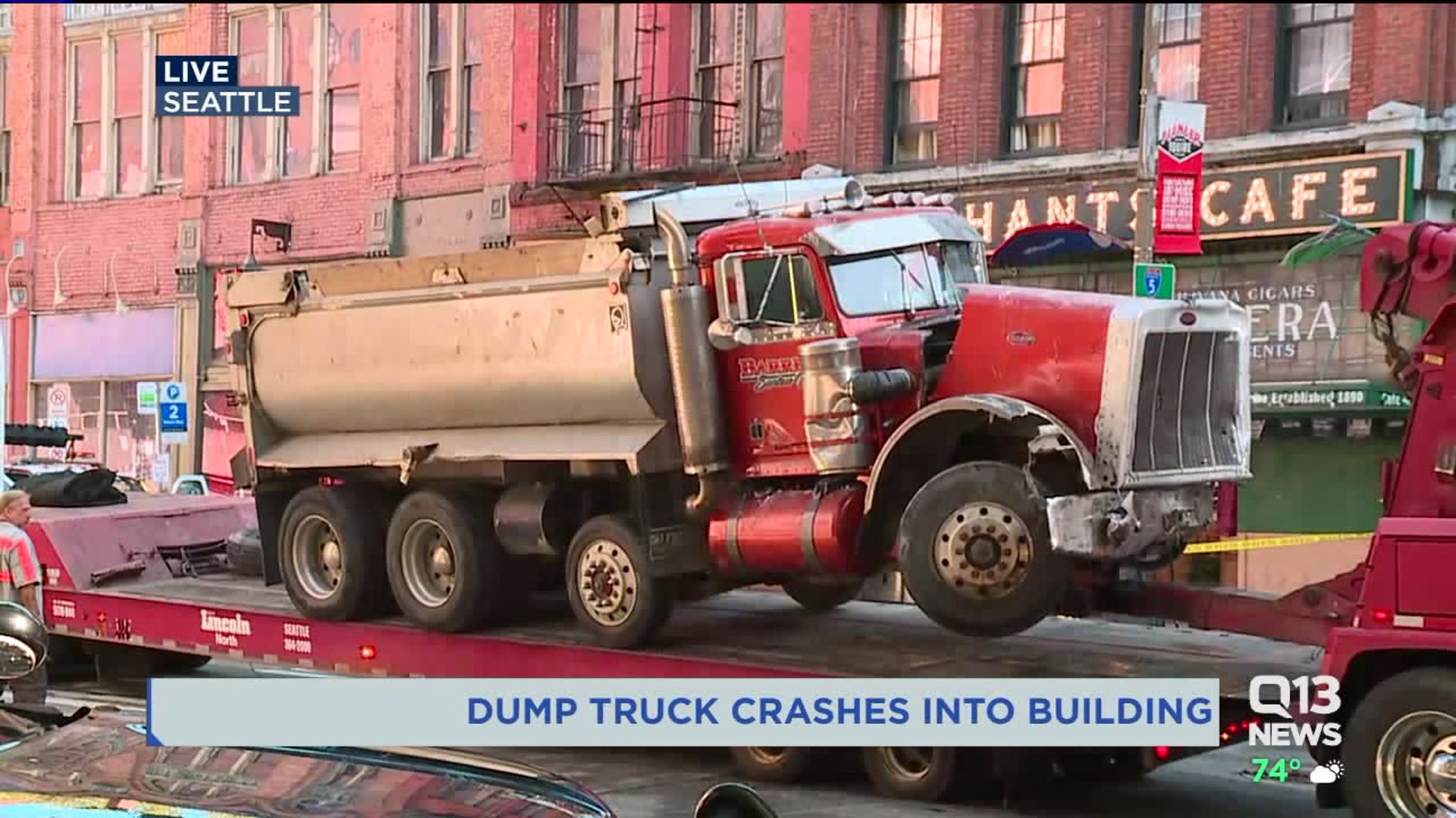 Dump truck hits pedestrian, cars before crashing into Subway restaurant in Pioneer Square