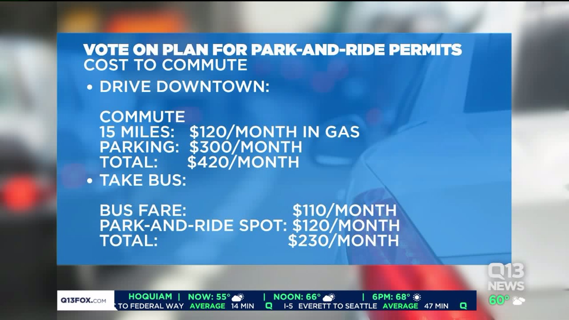 The lowest monthly fee would be $60, while other park-and-ride permits could be up to $120 a month. If you carpool, a permit will be free.