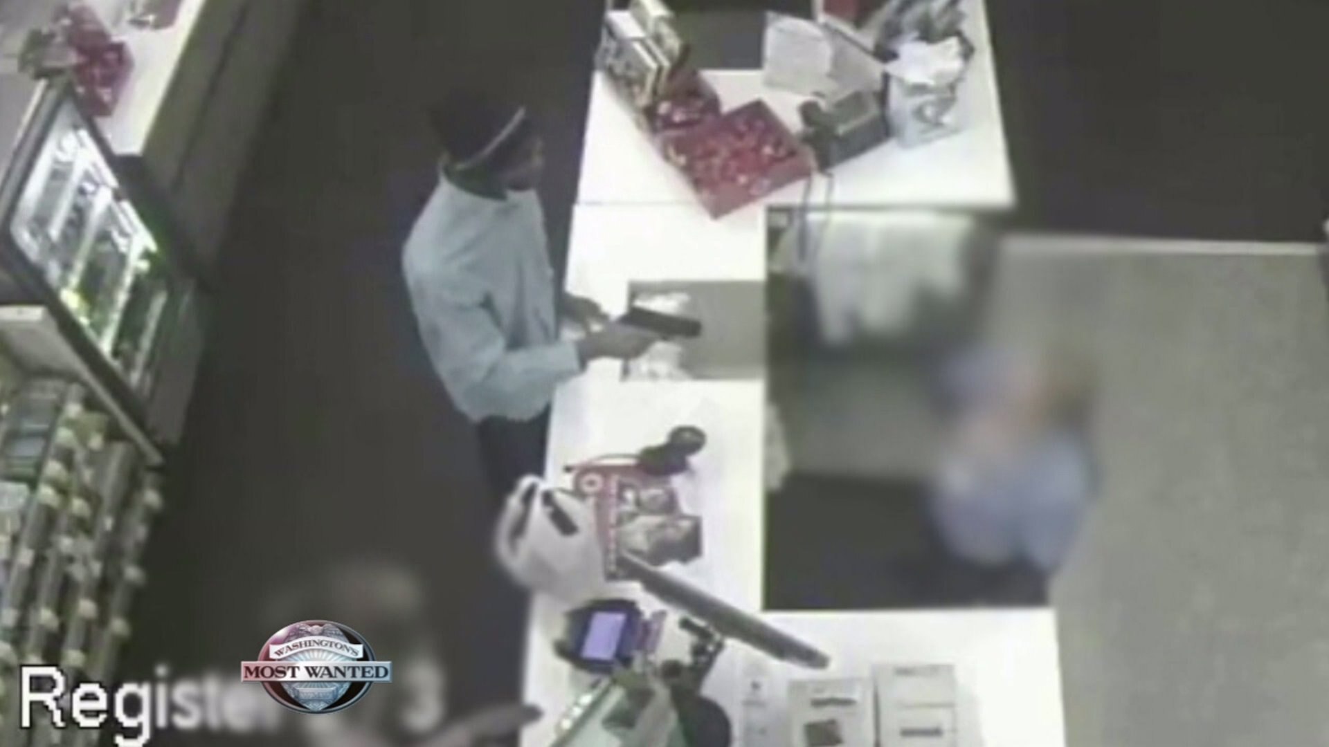 The video shows him whipping out a gun and points it at a teller at the Walgreens in Parkland last week no care that theres a manager standing right next to him, or the fear hes creating for the clerk.