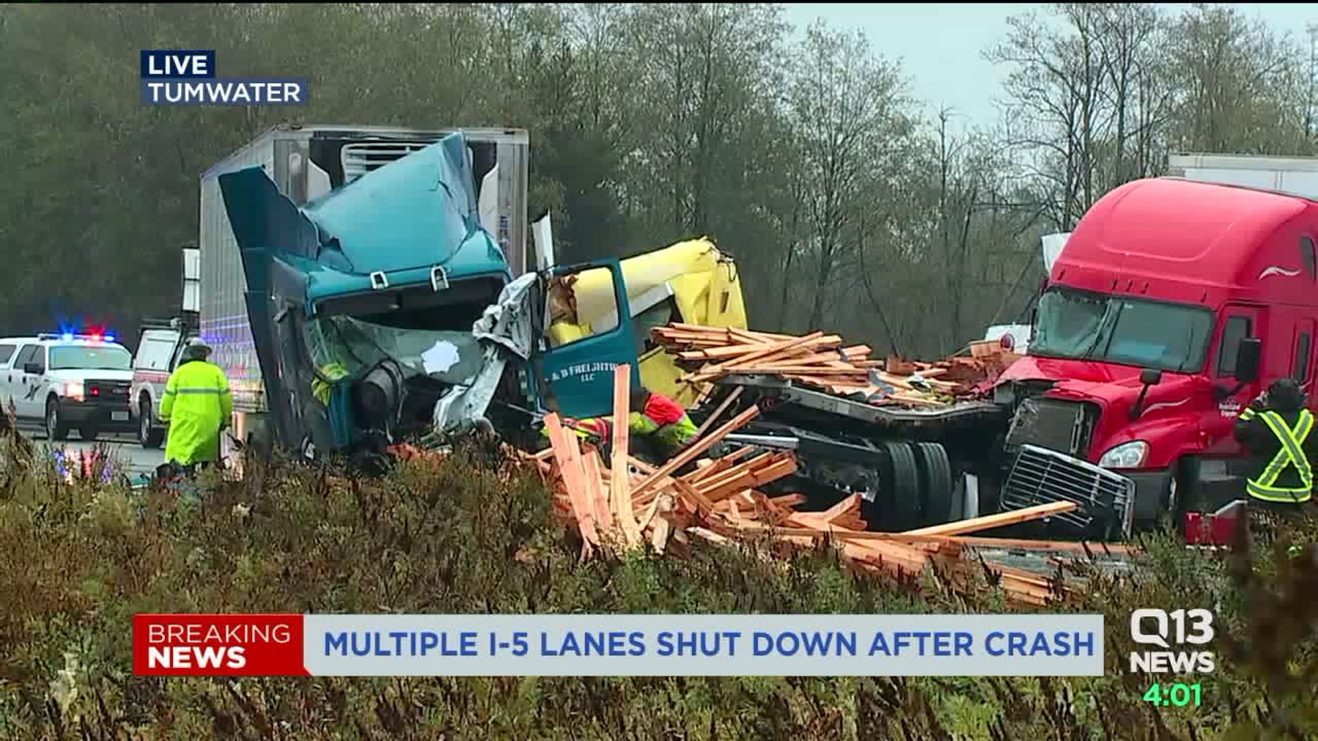 I-5 shut down in both directions south of Olympia after semi-trailer crash