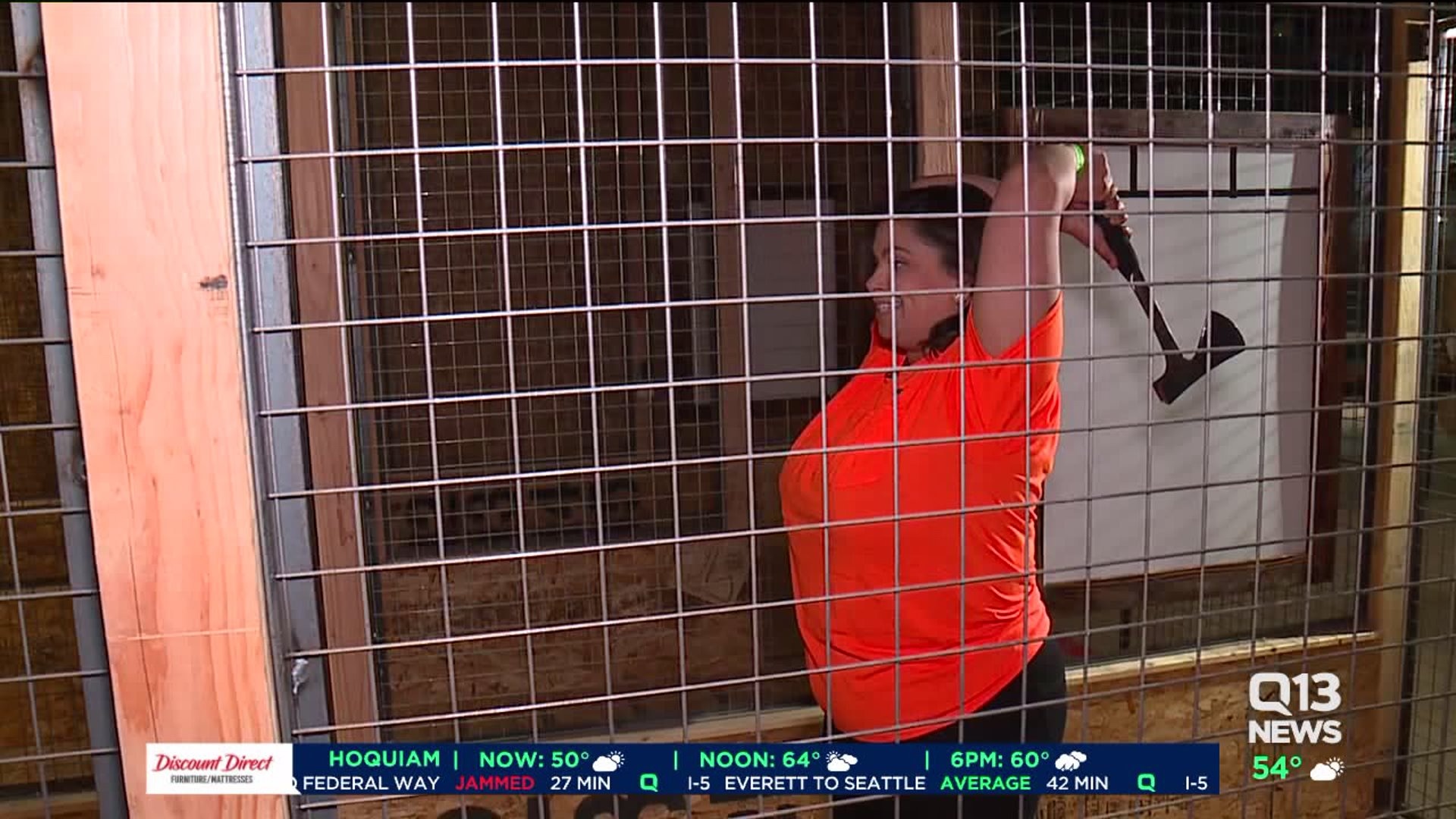 Ellen Tailor throws an axe at new Seattle axe throwing shop