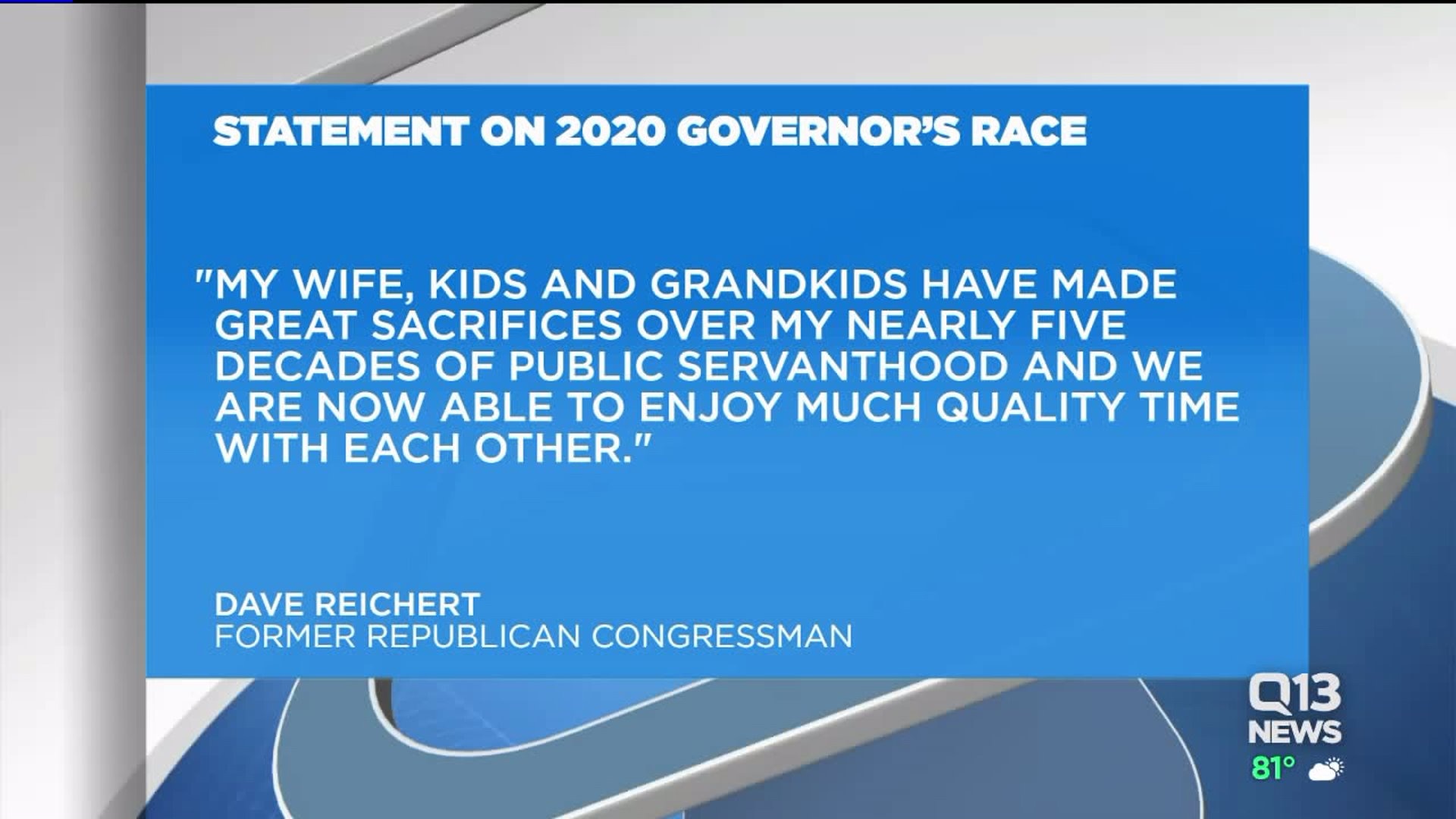 The announcement comes just days after the Washington GOP chair told Q13's Brandi Kruse that Reichert was considering a run.