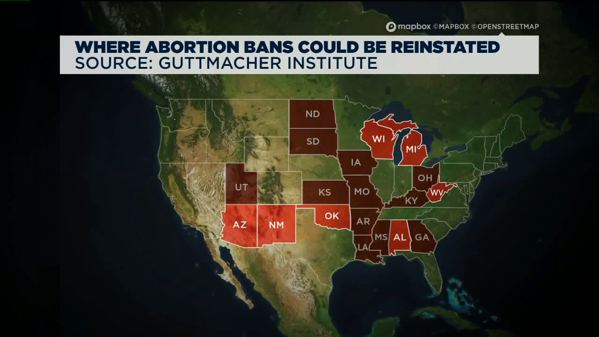19 states where abortion could be illegal by overturning Roe v. Wade