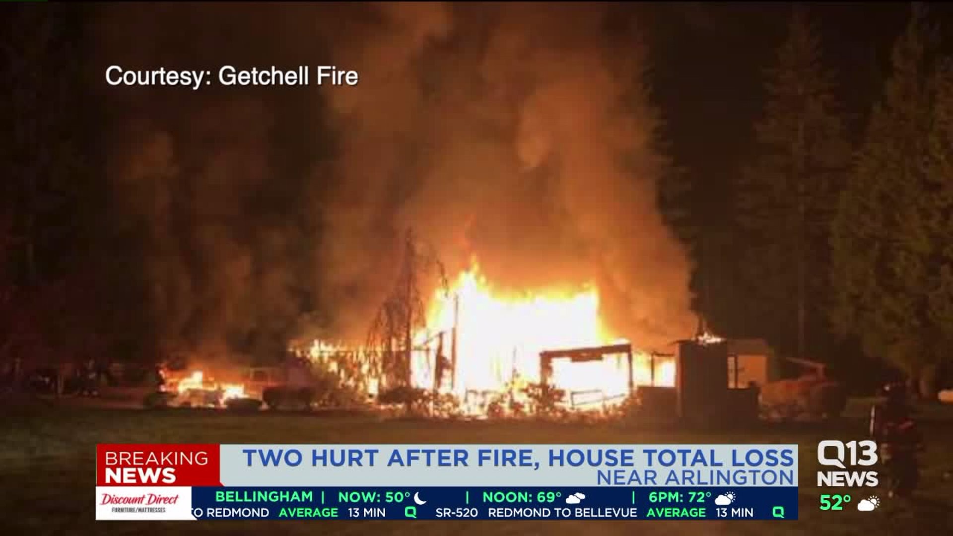 Two people were injured when a fire ripped through a Snohomish County home early Wednesday morning.