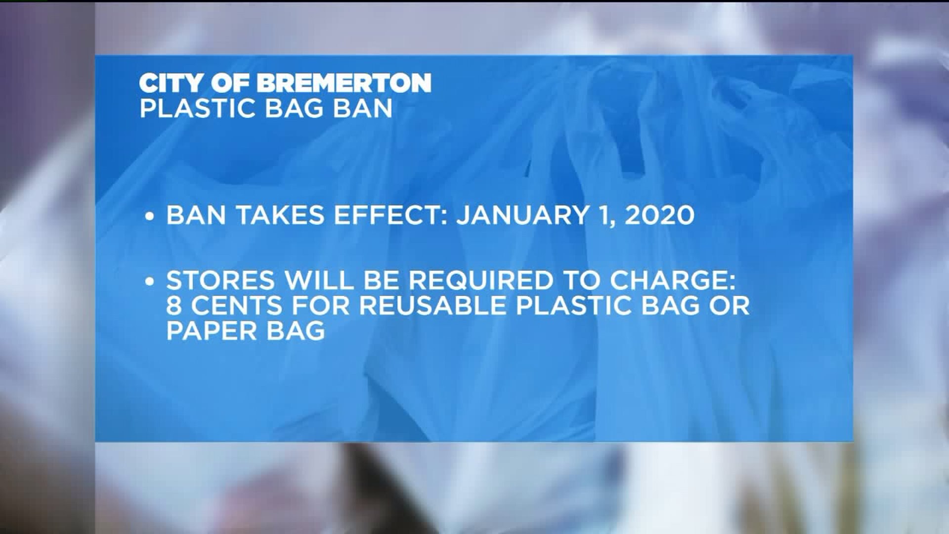 The city of Bremerton has banned single-use plastic bags, starting in 2020.