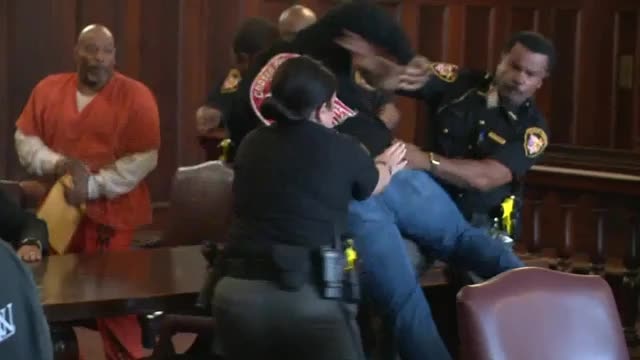Sons attack mother's convicted killer in courtroom brawl
