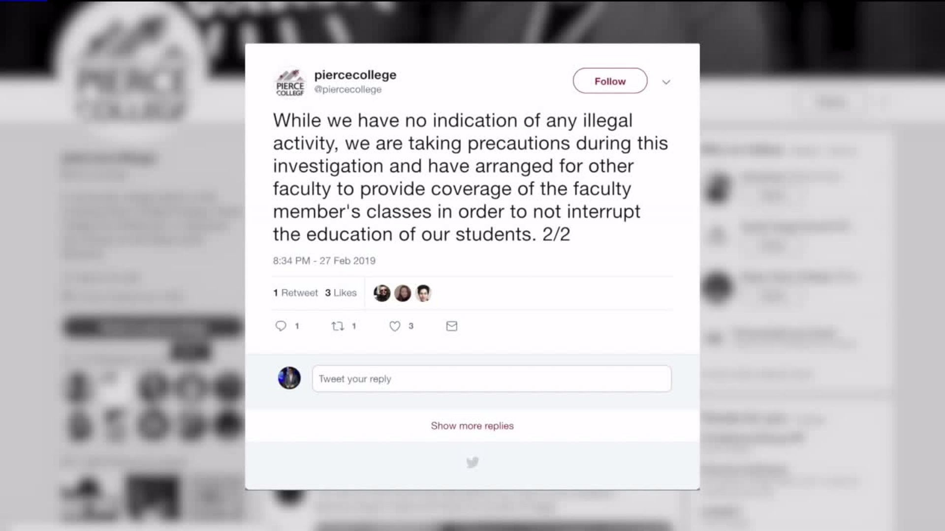 Pierce College investiagtes teacher following complaints from student over social media use