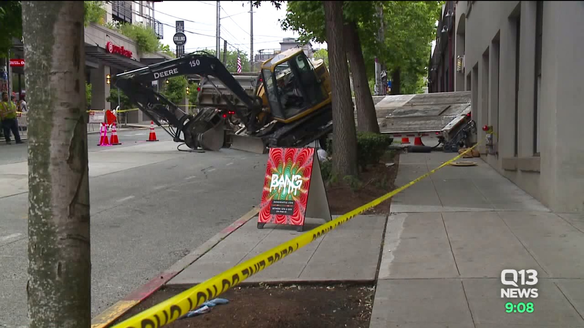 It happened near E Pine St and 12th Ave in Capitol Hill when a trailer hauling a backhoe flipped on its side, striking a 71-year-old man who was on the sidewalk with his walker.