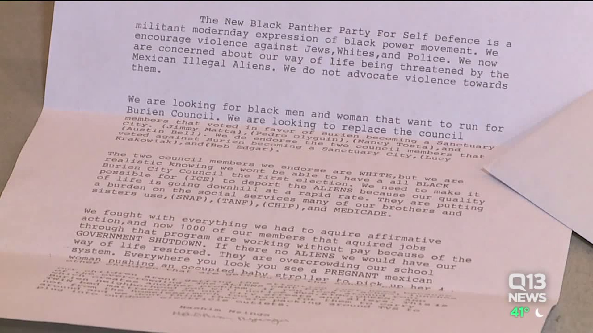 Officials denounce Burien hate letter